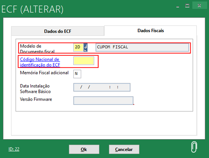 Código nacional de identificação do ECF: Onde preenchemos o código de identificação da ECF