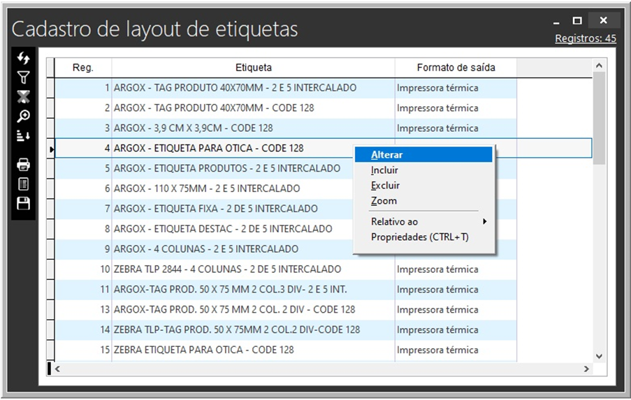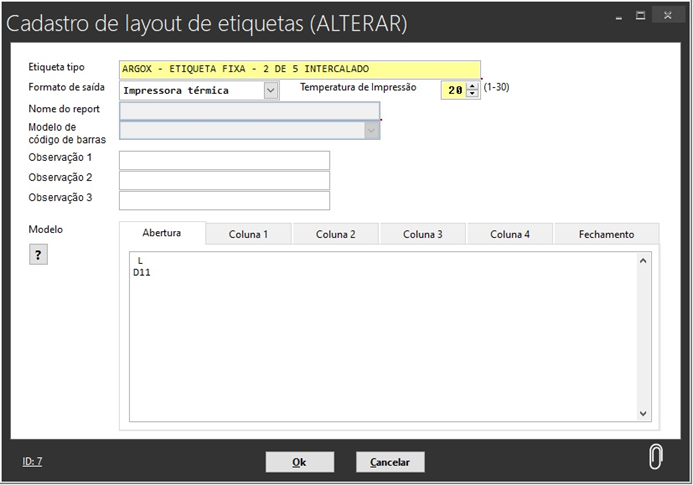 · Formato de saída -> Informa se a etiqueta é impressa de forma térmica ou como report;