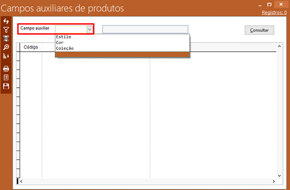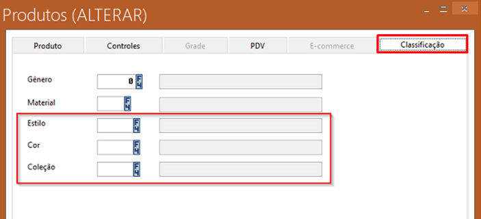 Essa tela é utilizada para o cadastro e edição dos campos auxiliares para um cadastro mais completo de um produto, como estilo, cor e coleção.