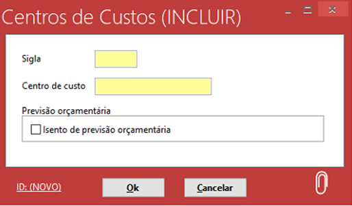 Ao abrir a tela em questão, vamos nos deparar com todos os centros de custos já cadastrados no sistema. Para realizar a inclusão de um novo centro de custo, para clicar com o botão direito do mouse, e selecionar a opção “Incluir” no menu de contexto que irá se abrir. Na tela que irá se abrir, será necessário preencher alguns campos para realizar o cadastro do novo centro de custo: