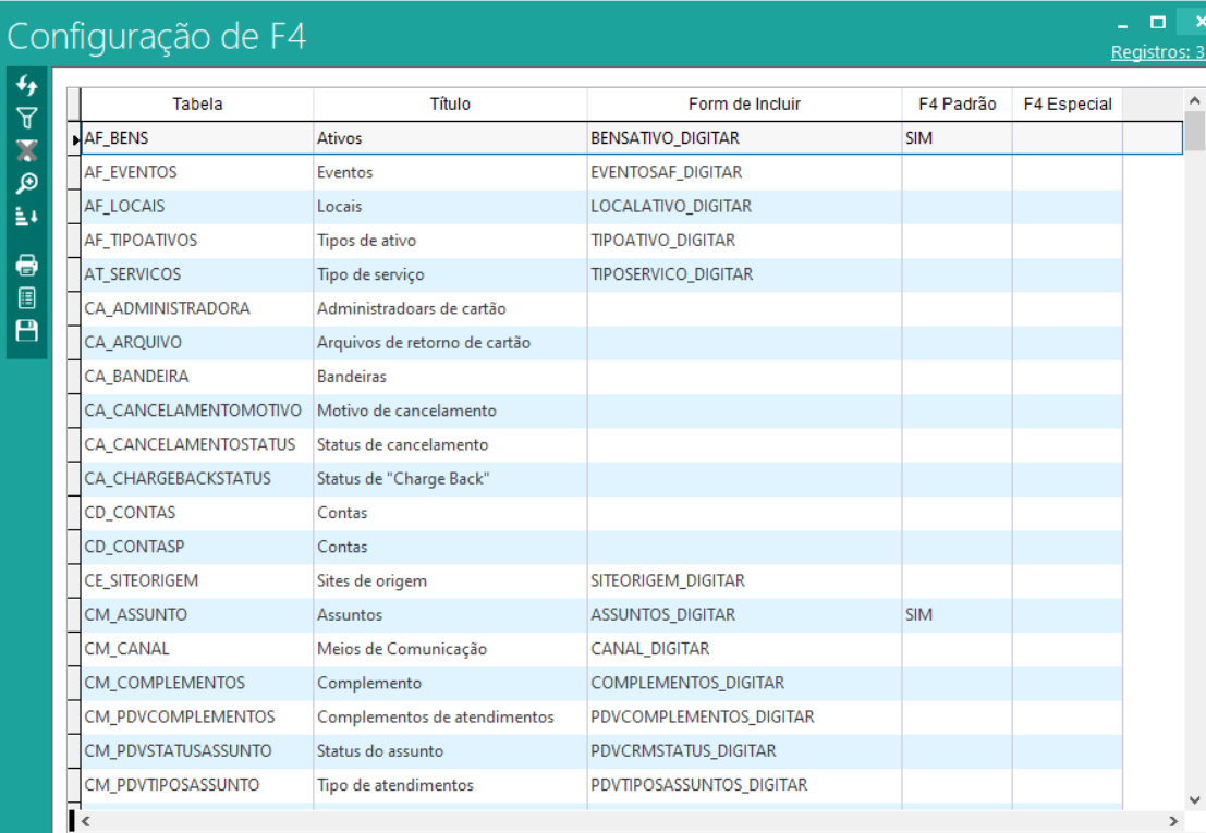 Ao abrir a tela em questão, vamos nos deparar com todas os cadastros de F4 realizados.