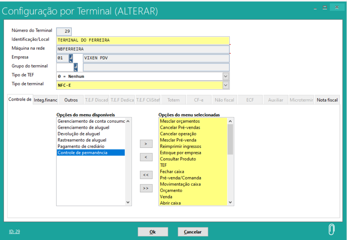 Tipo do terminal: Selecionar a modalidade fiscal daquele terminal.