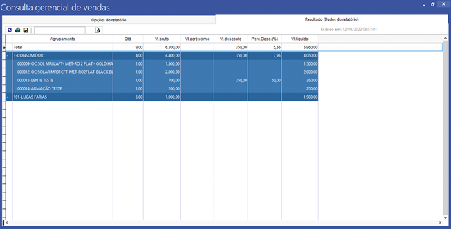 O relatório “Consulta gerencial de vendas” possibilita visualizar diversas informações acerca da venda de maneira personalizada, onde através de agrupamentos, temos a possibilidade de praticamente criar relatórios personalizados, permitindo criar estratégias para maximizar o lucro.