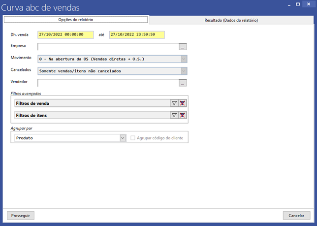 Ao cessar a tela em questão, vamos nos deparar com alguns campos destinado a filtragem dos dados do relatório: