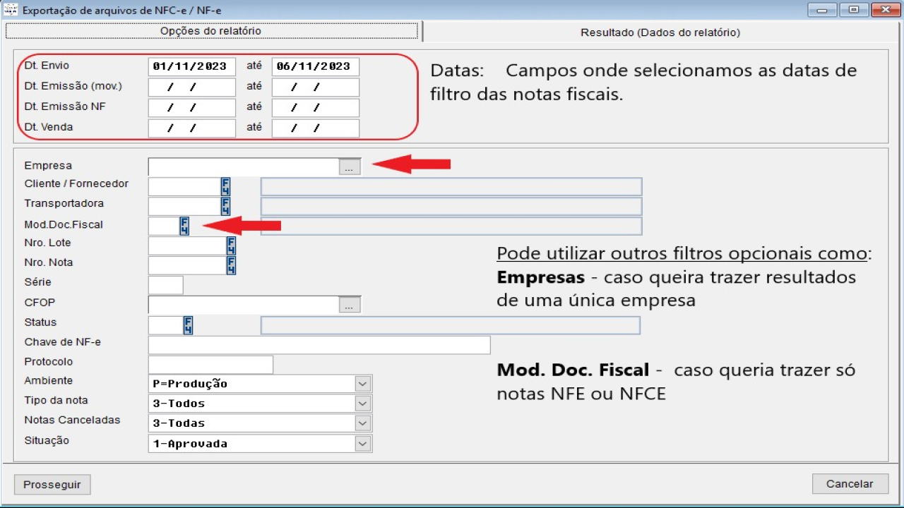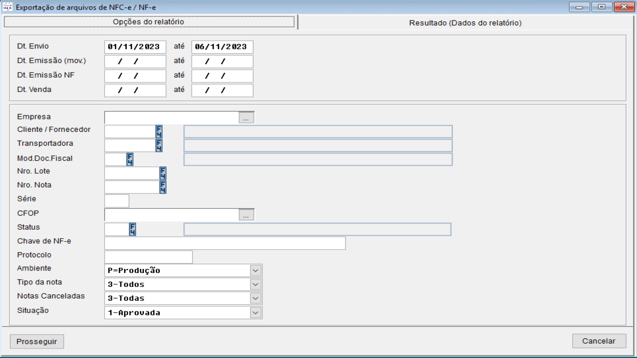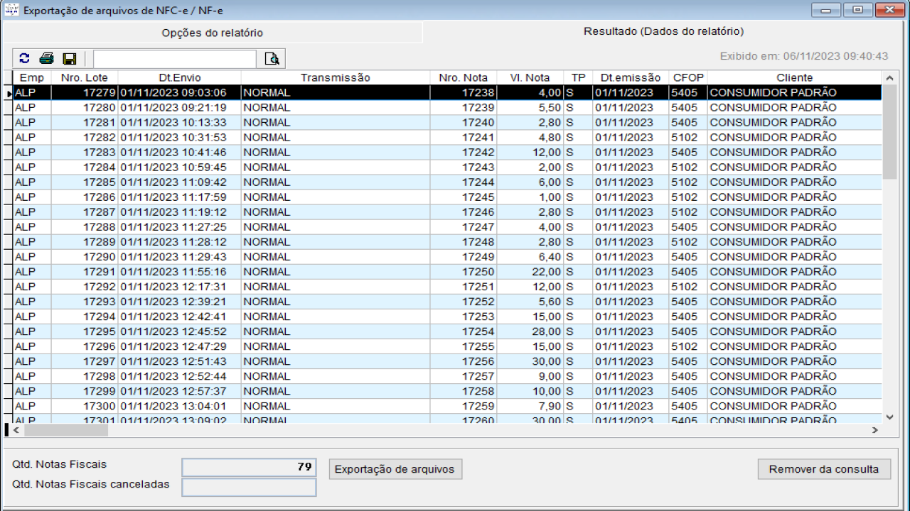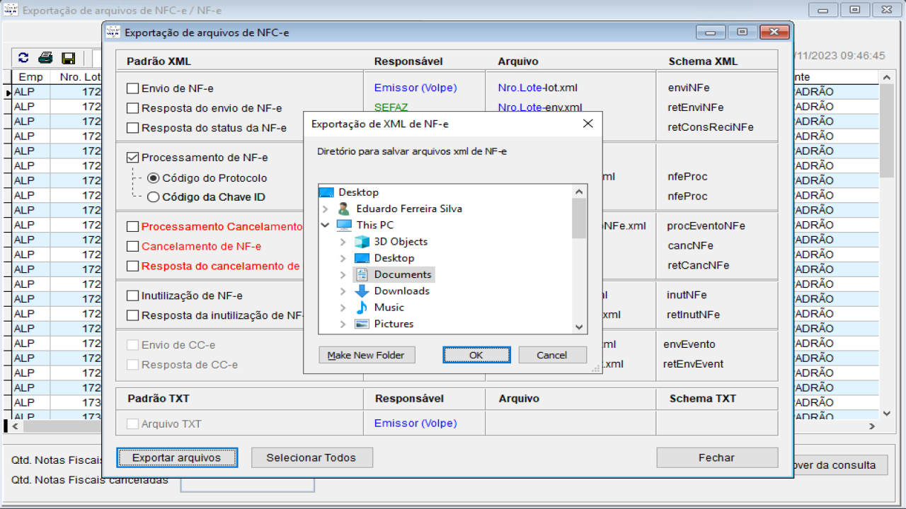 Exportação de arquivos de NFC-e/NF-e