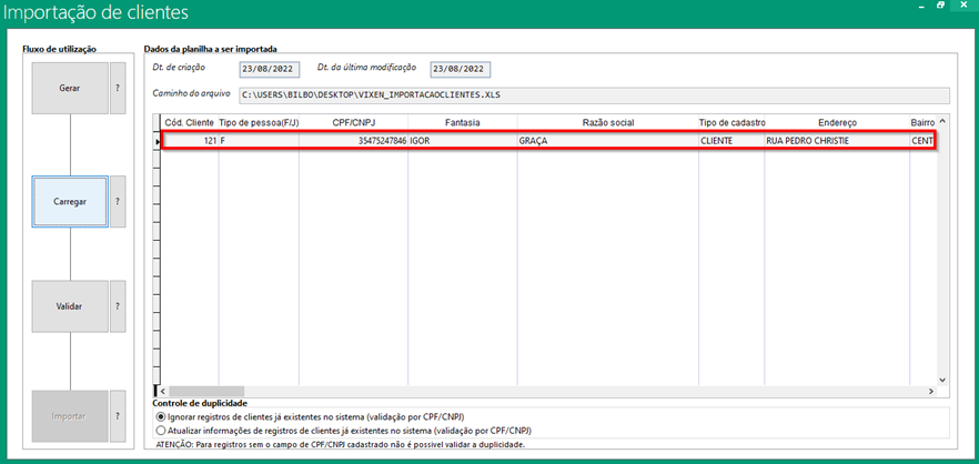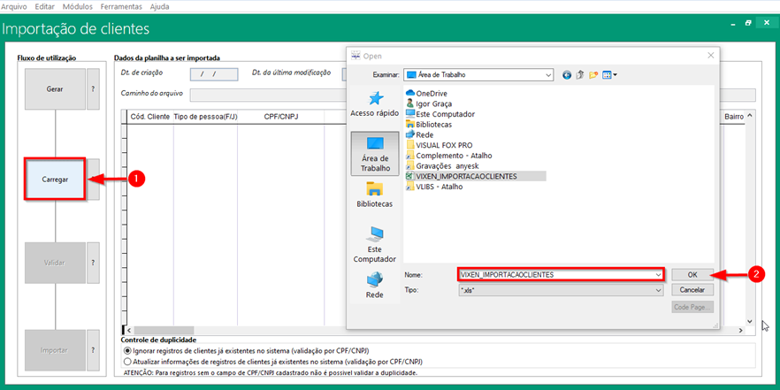 Importação de cliente