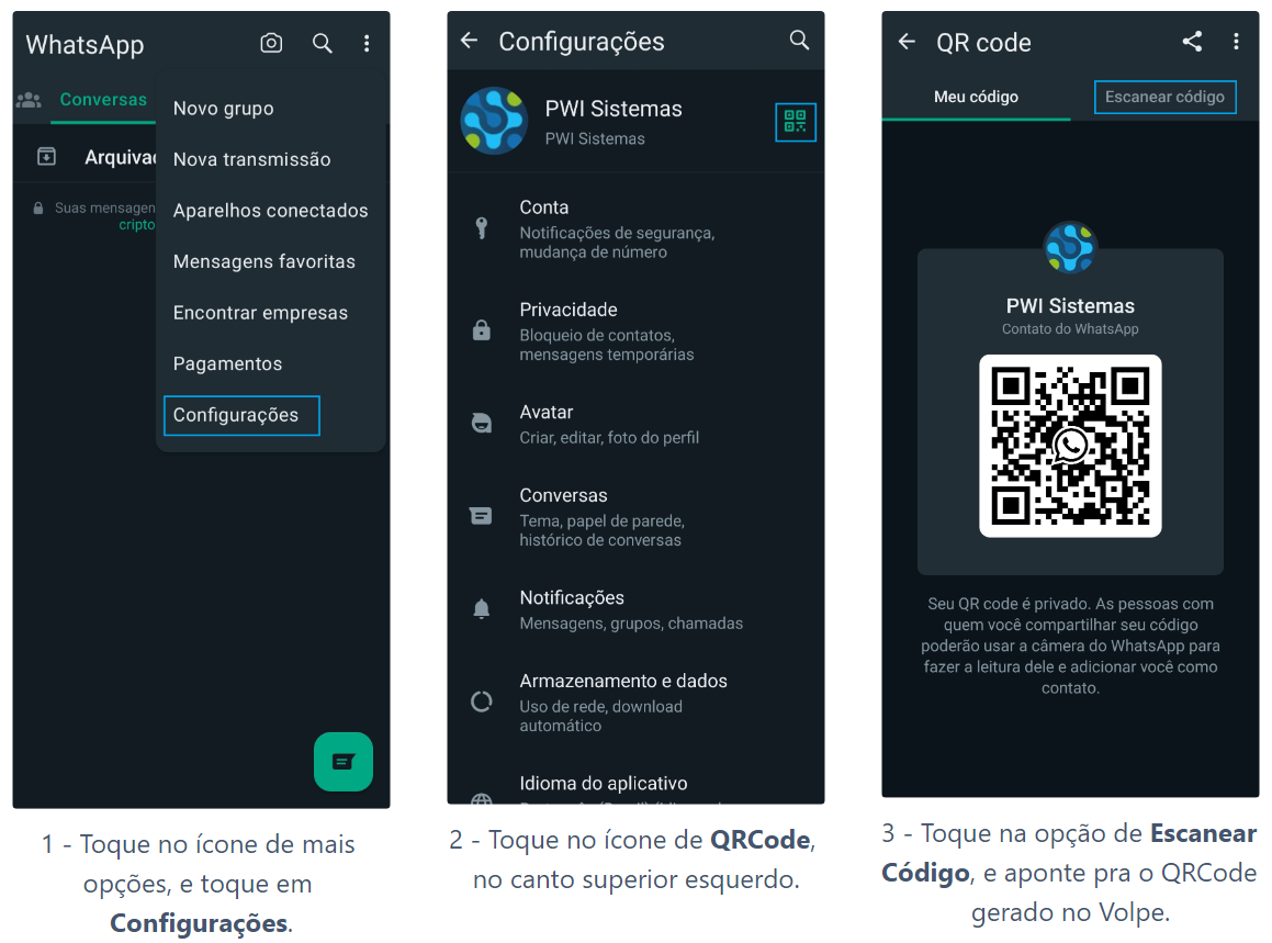 Siga estes passos para conectar seu dispositivo ao Volpe ERP.