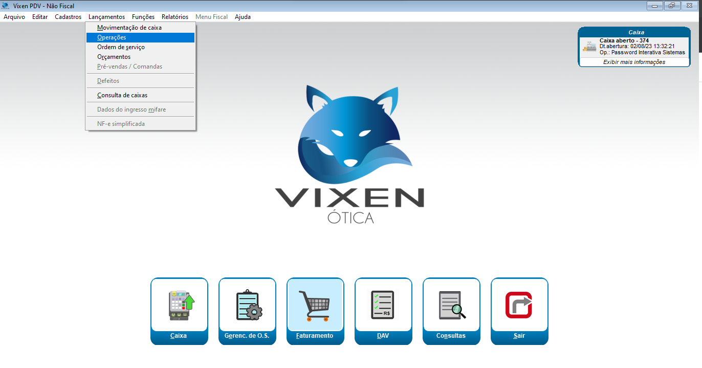 Com isso, acompanhamos as principais funcionalidades da seção “Operações” no Vixen Ótica PDV.