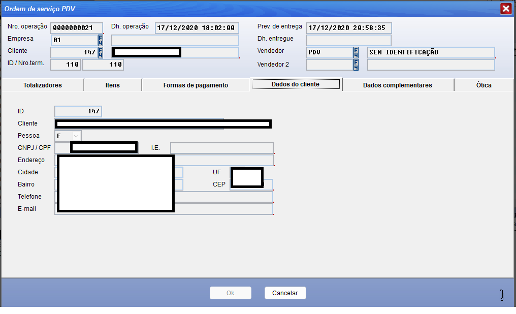 Entre elas a opção Zoom que se acessada ira aparecer uma janela com as informações pertinentes a ordem de serviço selecionada, como Itens da Ordem de serviço, formas de pagamento, dados do cliente entre outros.