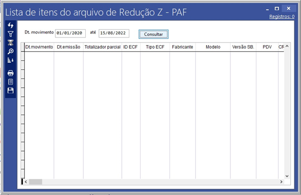 Essa tela é responsável por exibir os itens contidos nos arquivos de redução Z do ECF.
