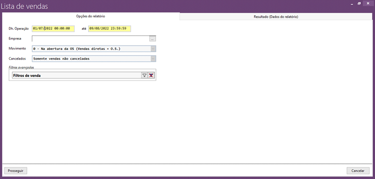 Preenchendo os filtros necessário, basta clicar em “Prosseguir” para que o relatório retorne os dados filtrados: