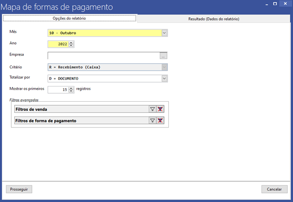Ao finalizar o preenchimento de todos os filtros necessários, basta clicar em “Prosseguir” para obter os dados do relatório: