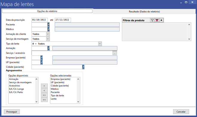 Através do relatório “Mapa de lentes” você pode verificar quais as lentes mais vendidas, apresentadas conforme os agrupamentos que você selecionar.
