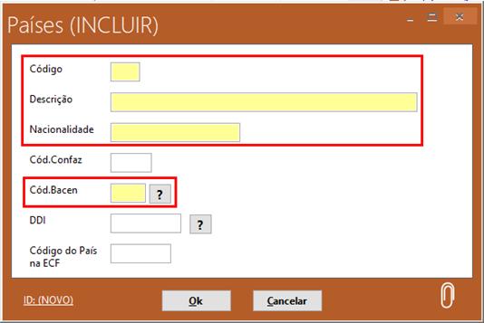 Para realizar o cadastro do país precisaremos incluir as seguintes informações: