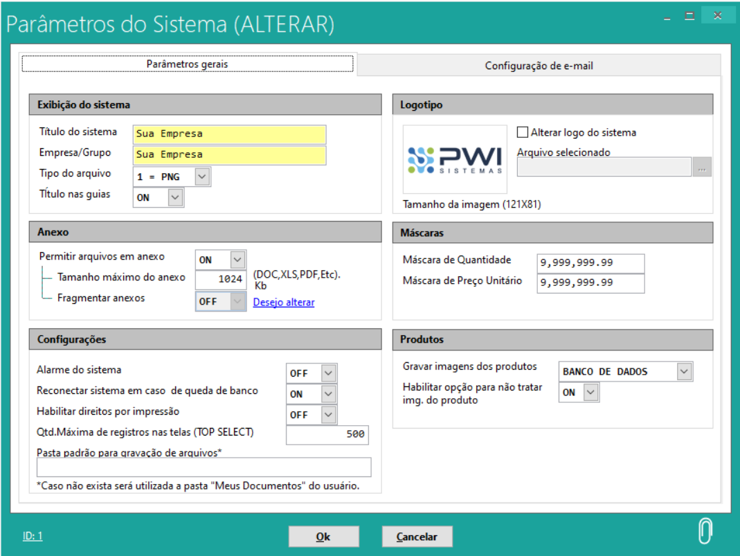 Na aba Parâmetros Gerais temos a possibilidade de configurar: