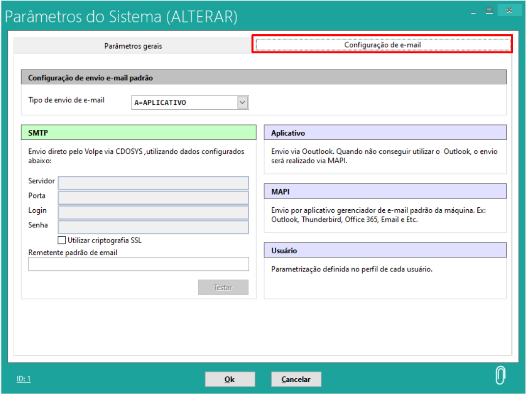 Na aba Configuração de E-mail: