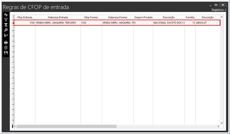 Assim, teremos o CFOP de entrada cadastrado, possivelmente enviando um erro ao enviar de notas, já que o Vixen notificado a falta da regra.