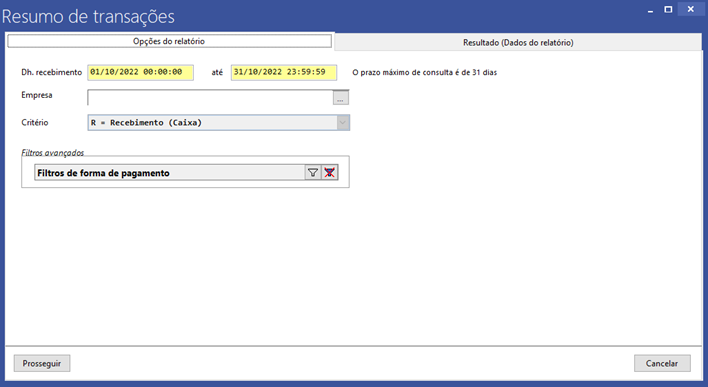 Após preencher os filtros necessário, basta clicar em “Prosseguir” para obter o resultado desejado: