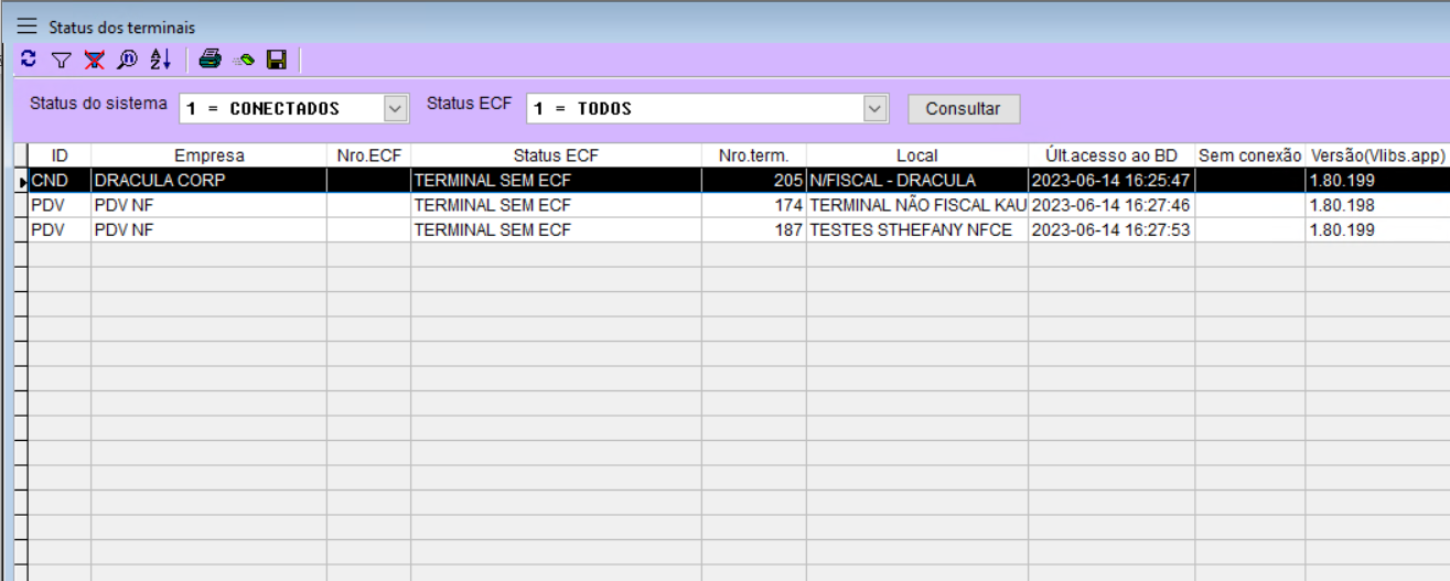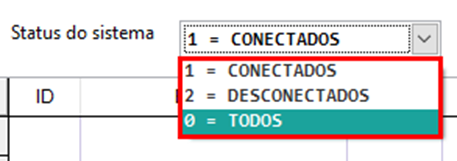 Status do sistema -> Neste campo podemos selecionar apenas um status do sistema referente aos terminais, os status disponíveis são: