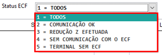 Status ECF -> Neste campo podemos selecionar apenas um status ECF, os status disponíveis são: