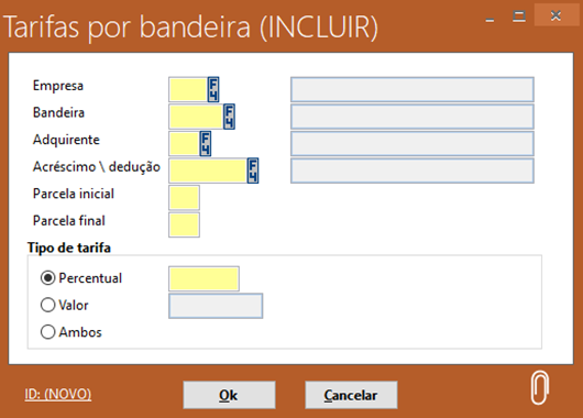 Bandeira: Indicar a bandeira que será utilizada na configuração da tarifa.