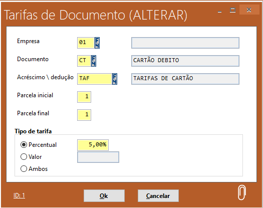 Após preencher todos os campos necessários, basta clicar em “Ok” para finalizar o cadastro da tarifa por documento.