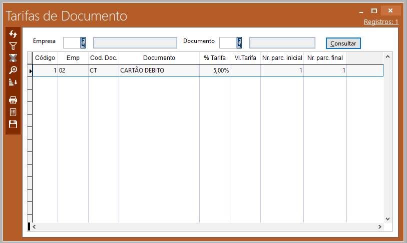 Empresa: Preencher a empresa a qual será configurada a tarifa.