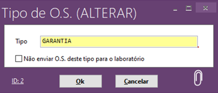 Com isso, basta clicar em “Ok” para finalizar o cadastro desse novo tipo de O.S.