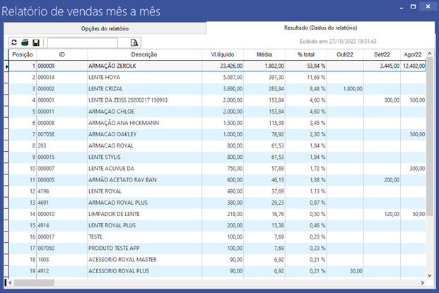 Vendas mês a mês é um relatório que retorna as vendas de acordo com o mês ou de ano em ano. Esse relatório pode ser útil para ter o controle mensal ou anual de vendas de sua empresa.