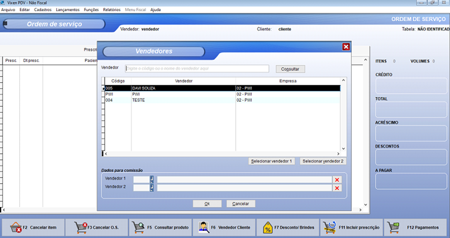 Após incluir o vendedor, vamos conseguir apontá-lo em uma venda através do Vixen PDV.